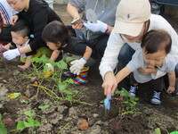幼稚園の畑で育てているおいもを、お母さんと一緒に掘ってもらいます。